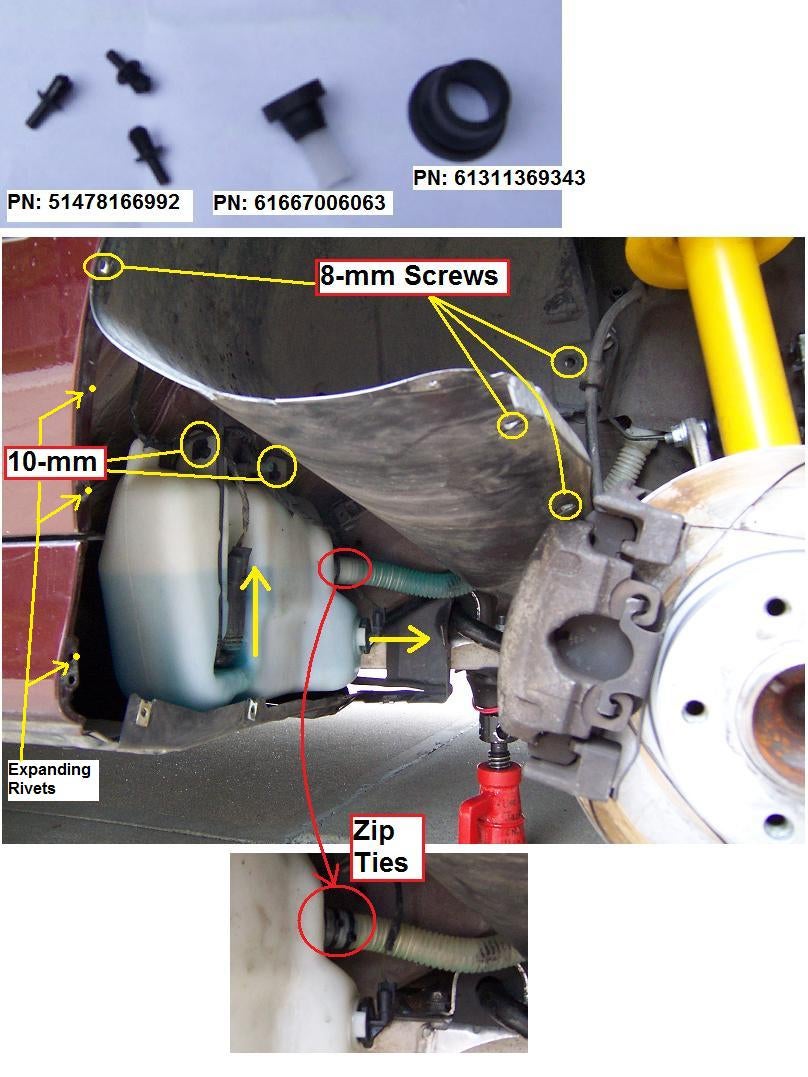 For part numbers of the reservoir pumps and gaskets grommets refer to this parts explosion diagram.